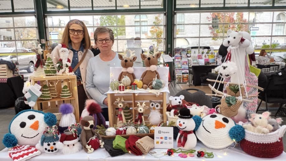 Cheryl (right) pictured here at the Market Square in St. Catharines, ON, with her sister Trish (left).